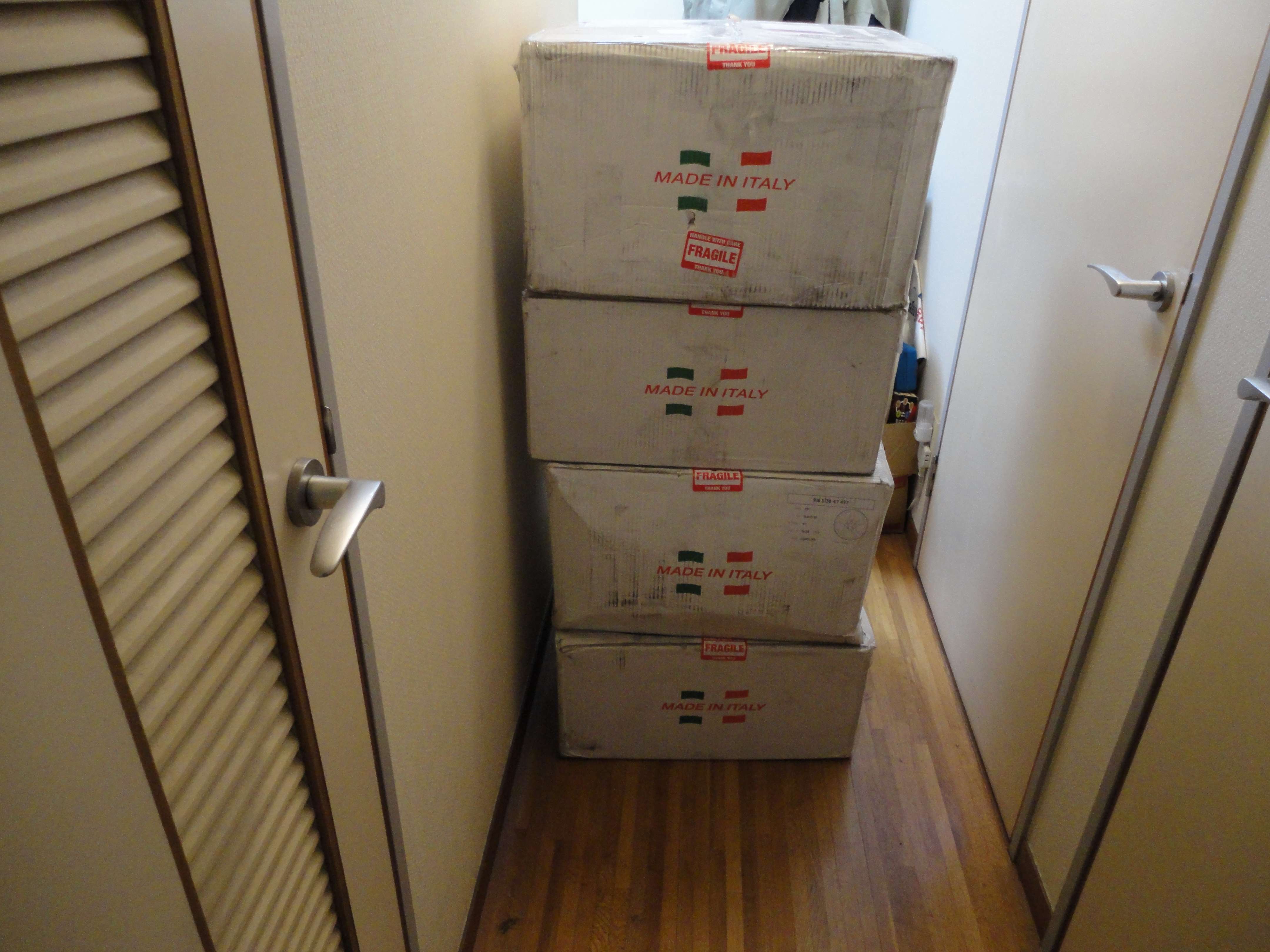 箱に入っていると廊下をふさいで通れませんので、出してみました。