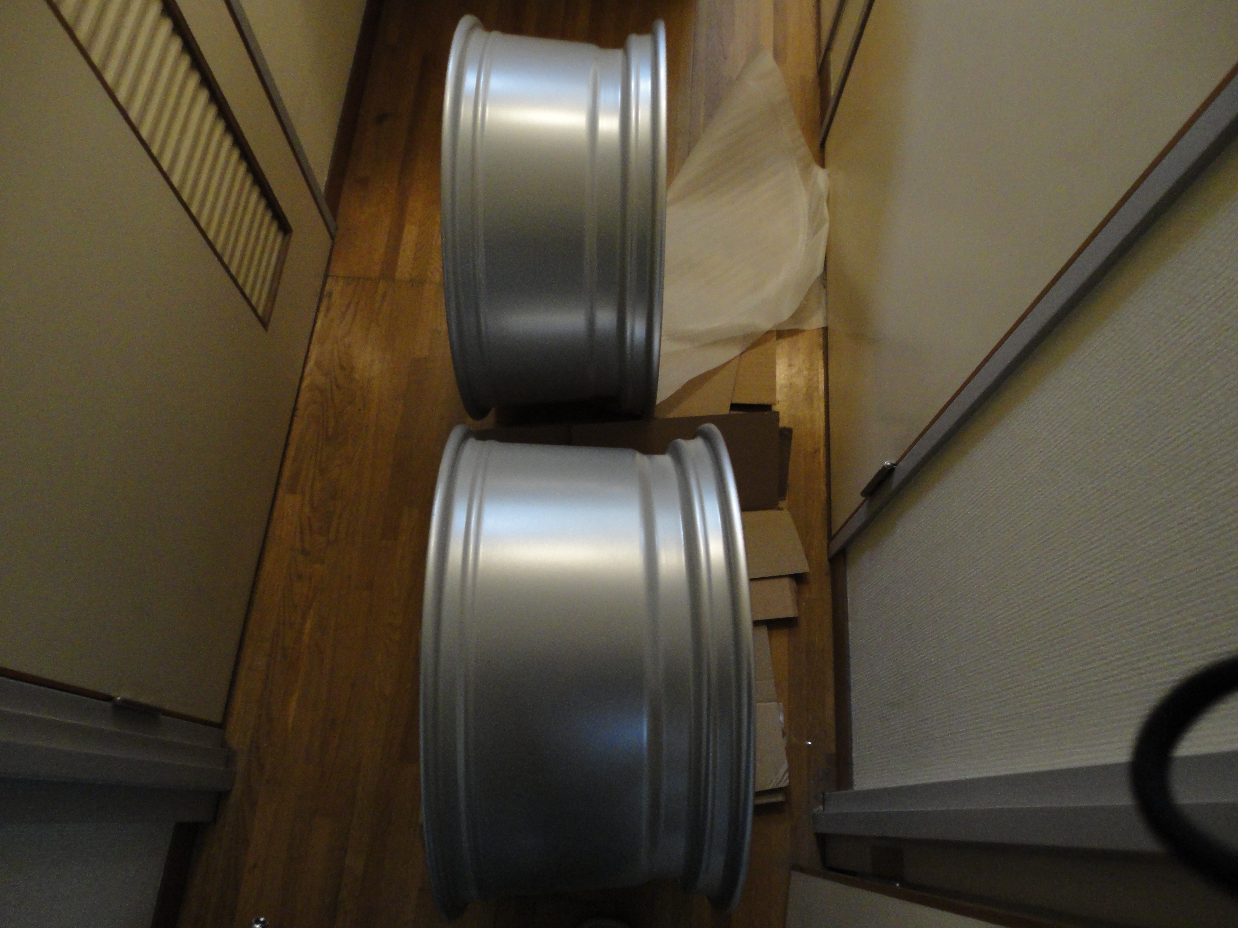 重さは、フロント用が13.6kg、リア用が15.4kg。まあ分かっていましたが、決して軽量ホイールではないですね。鋳造の19インチ8.5Jと10Jですから仕方有りません。